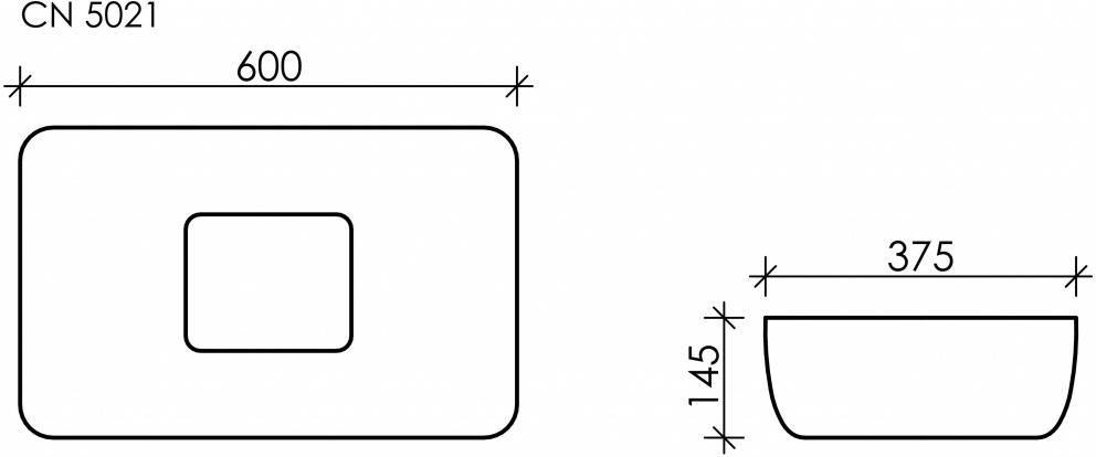 | Умывальник чаша накладная прямоугольная с керамической накладкой на сливное отверстие Element 600*375*145мм |