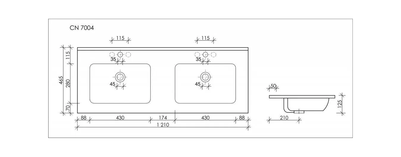 | Умывальник накладной прямоугольный Element 1210*465*125мм |