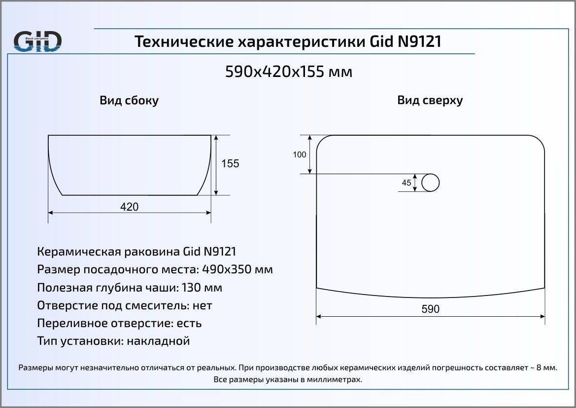 Раковина накладная Gid Simple-N N9121 УТ-00052028