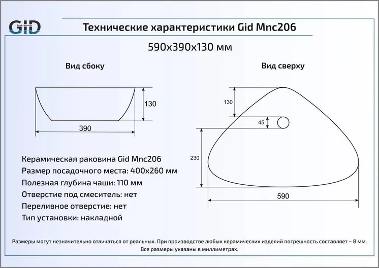 Раковина Gid Mnc206 накладная черная УТ-00040624