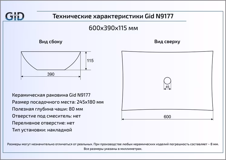 Раковина накладная Gid Simple N9177 УТ-00020722