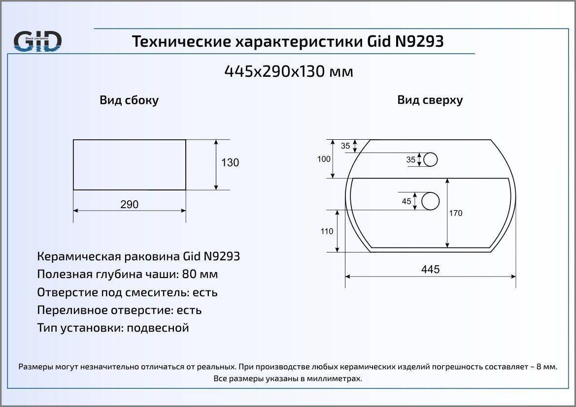 Модель Gid N9293 оборудована переливным отверстием, на случай когда чаша будет переполняться. Поддерживать её в чистоте не составит труда. Для фаянсовых поверхностей Gid, мы рекомендуем моющие жидкости и гели со значением pH не более 10.