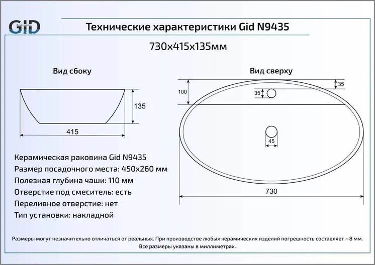 Раковина GID-ceramic N9435