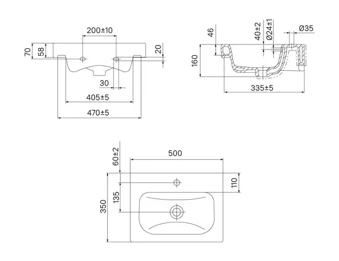 - Расположение отверстия под смеситель: