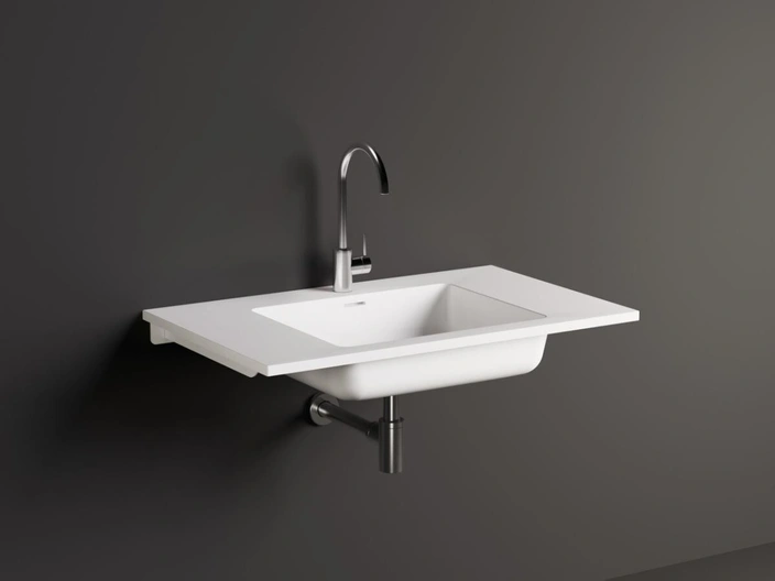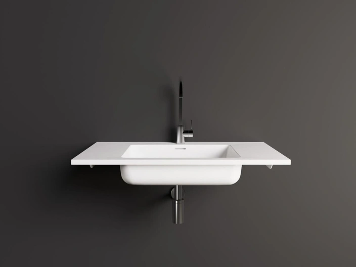 Возможна подвесная установка с креплением на кронштейны к стене, а также использование раковины для оформления мебели для ванной комнаты по собственным чертежам, с учетом особенностей конкретного помещения.