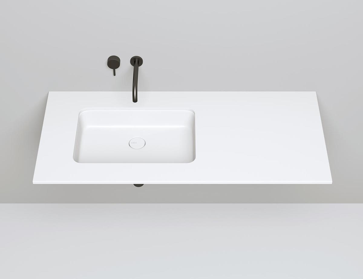 Узкий бортик высотой 8 мм может быть скрытым под столешницей, либо выступать над поверхностью столешницы, образуя чёткий контур раковины.