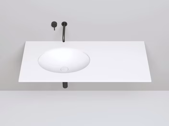 Узкий бортик высотой 8 мм может быть скрытым под столешницей, либо выступать над поверхностью столешницы, образуя чёткий контур раковины.