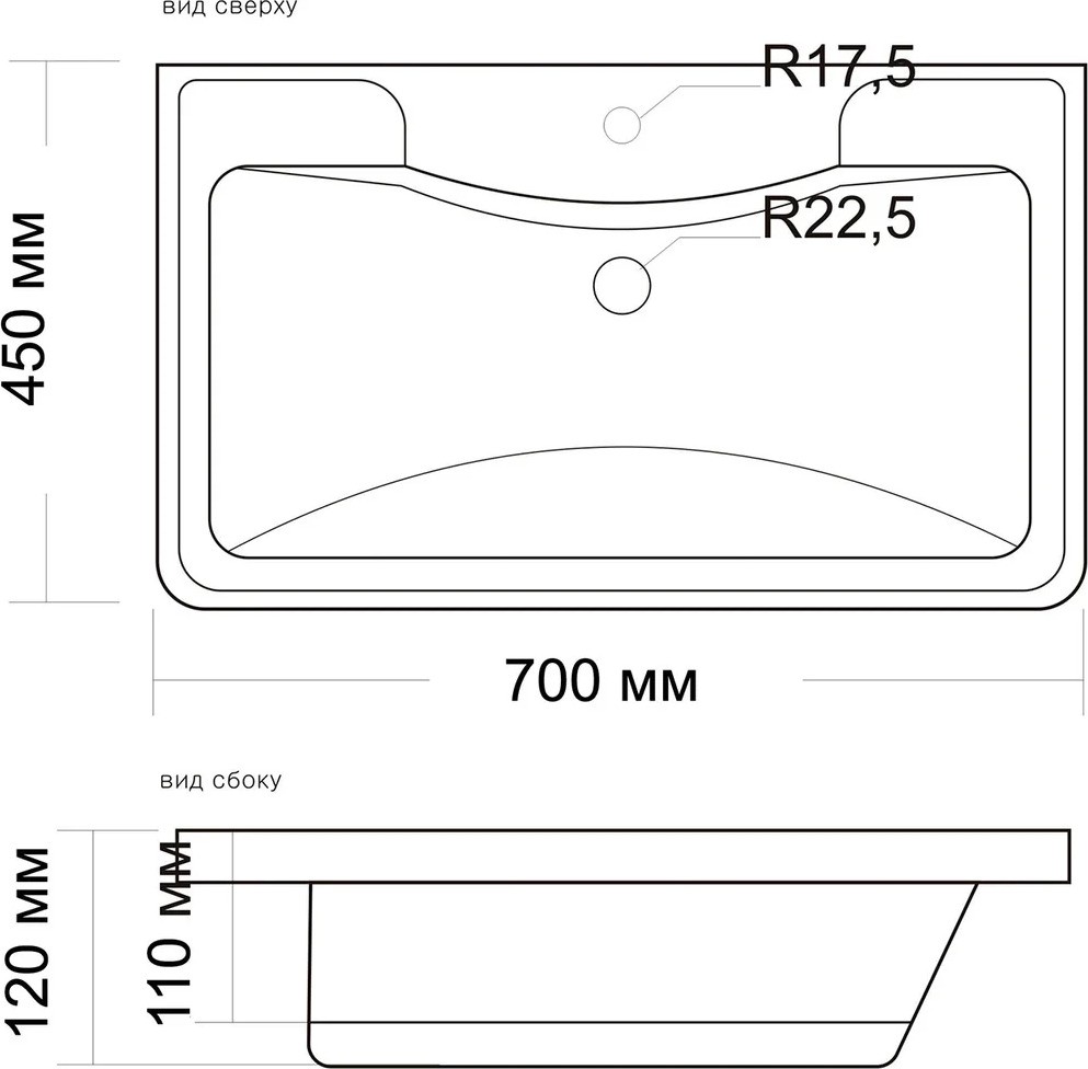 Раковина мебельная Style line Атлантик 70 СС-00002342 УТ-00182022