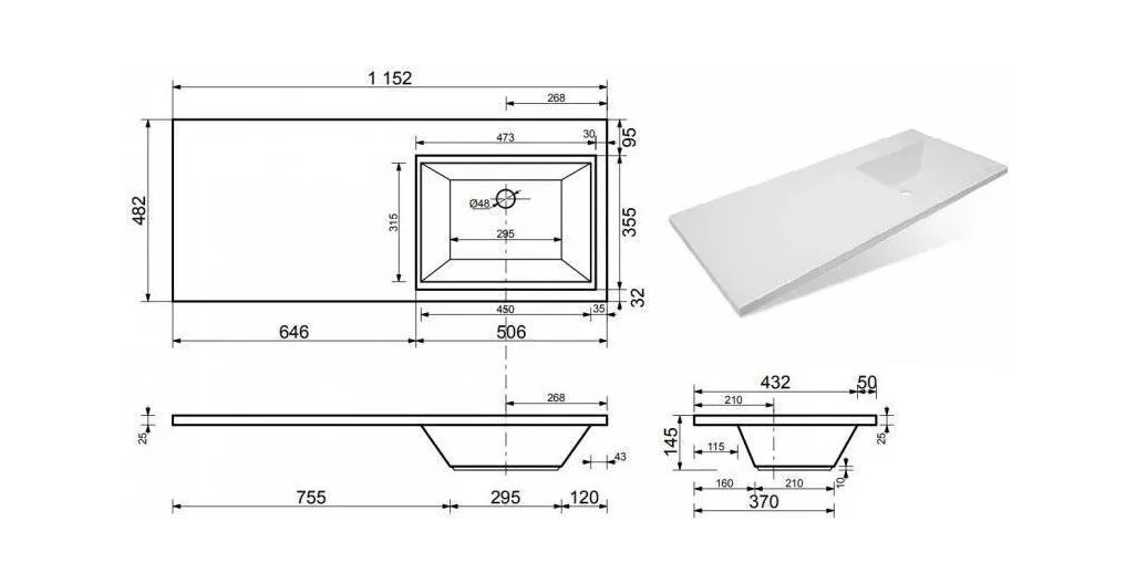 Раковина Style line Даллас 115*48 СС-00000519 правая
