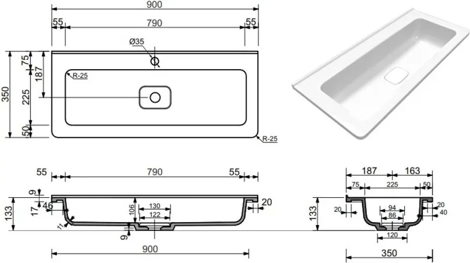 Раковина Style Line Каре Люкс мини 90 СС-00002360 УТ-00176063