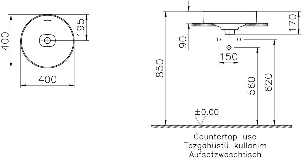 Раковина VitrA Metropole 7532B003-0673 40 накладная УТ-00178581