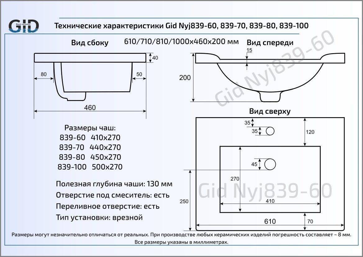 Раковина для ванной Gid Nyj839-60 монтируется в столешницу.