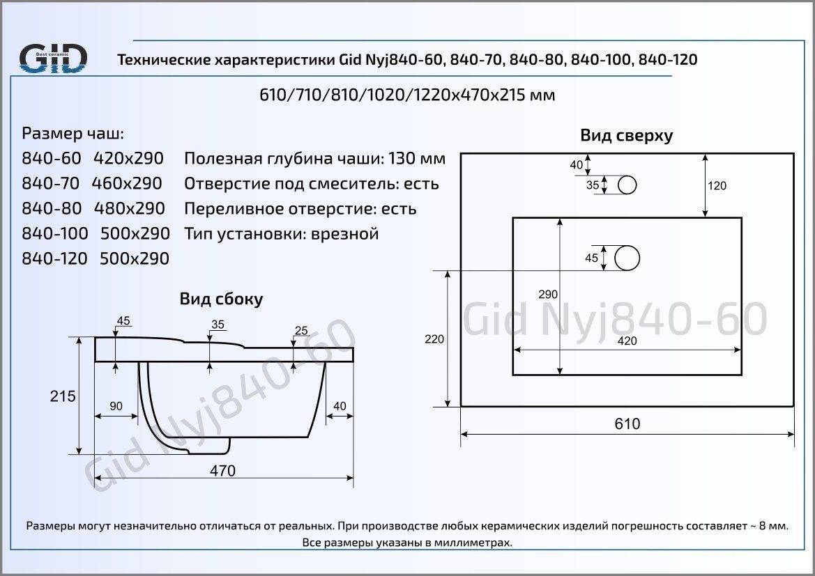 Раковина для ванной Gid NYJ840-70 монтируется в столешницу.