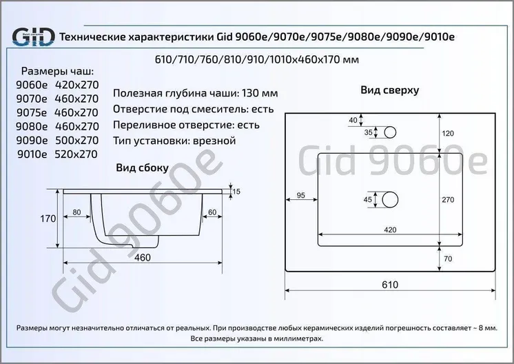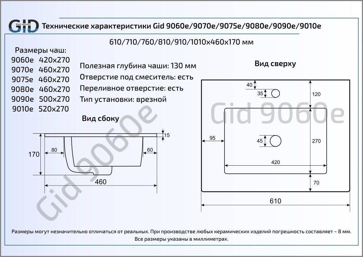 Раковина для ванной Gid 9090e монтируется в столешницу.