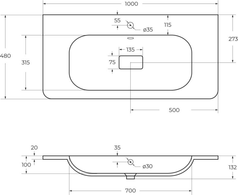 Раковина мебельная Cezares Relax 100 CZR-1000/480-LV-MR-NV-W0 без отверстия под смеситель
