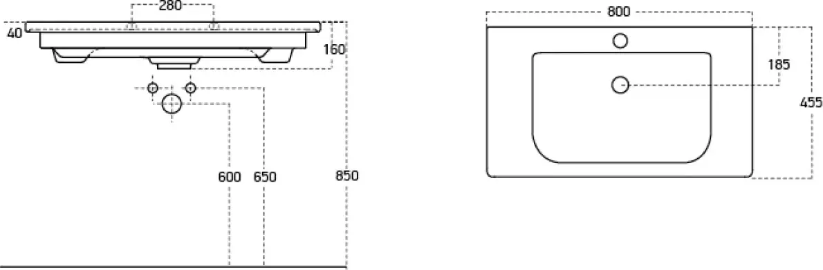 - Расположение отверстия под смеситель: