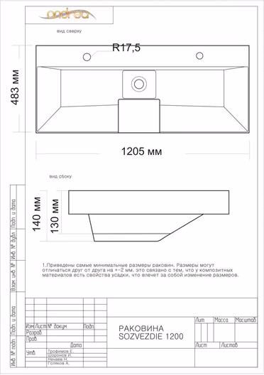 Раковина Andrea Sozvezdie 120, литьевой мрамор