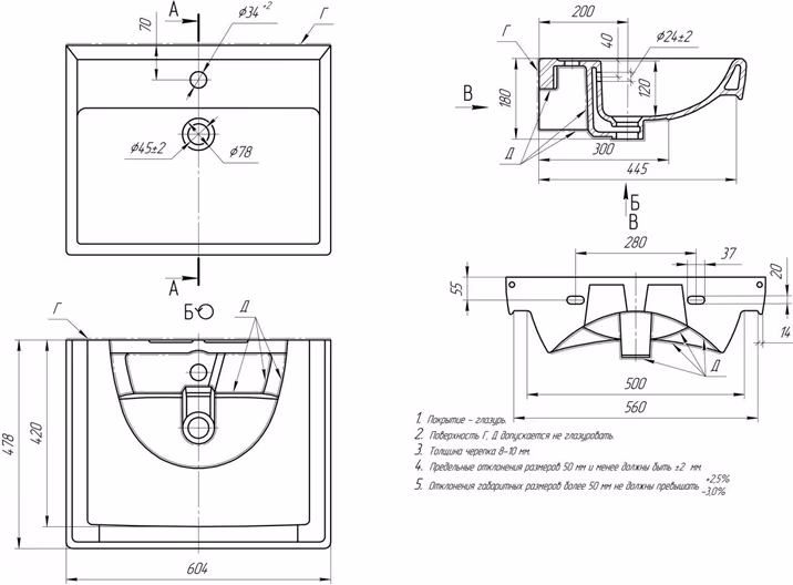 Технические свойства (раковины)