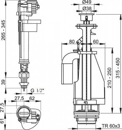 Арматура для сливного бачка, 1/2" двойная кнопка, нижняя подводка, металлический клапан, Чехия, sa08 sk, AlcaplastСодержимое упаковки: A17 3/8", A08A, шурупы, прокладки