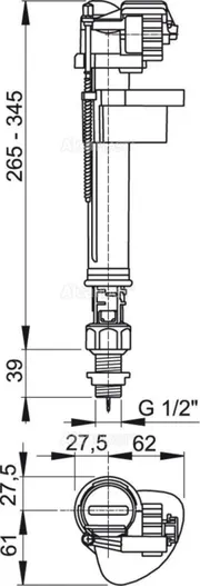 Наливной клапан Alcaplast A17-3/8", нижняя подводка с пластиковой резьбой СТ007721