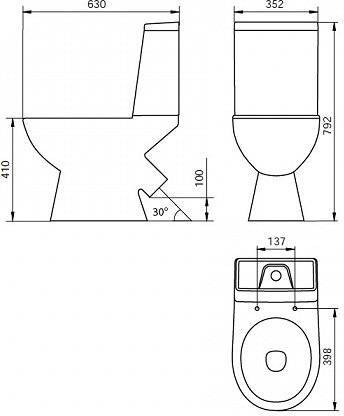 - Чаша унитаза - 1 шт. Крышка - сиденье - 1 шт. Бачок - 1 шт.