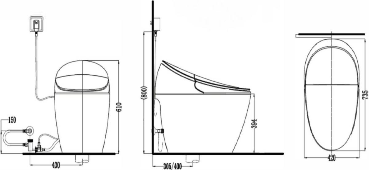 | • Управление функциями на унитазе • Режим обмыва(общий, женский, деликатный, детский) • Подвижная, регулируемая, форсунка обмыва • Функция массажа распылителем воды под давлением • Моментальный нагрев воды и поддержание выставленной температуры(4 уровня настройки температуры) • Регулировка позиции обмыва(4 уровня настройки позиции) • Регулировка напора воды(3 уровня настройки напора) • Подогрев сиденья(4 уровня настройки температуры) • Сушка теплым воздухом(4 уровня настройки температуры) • Автоматическое поднятие/опускание крышки и сиденья • Автоматическое устранение неприятных запахов • Датчик присутствия на сиденье • Автоматический смыв • Плавное опускание крышки сиденья "Soft Close" • Автоматическая очистка форсунки • Энергосберегающий режим • Ночная интерьерная подсветка "Blue Light" • Автодренаж • Функция уведомления об ошибке/поломке системы • Режим “Авто – Одна кнопка” – активация 3-х функций(обмыв, сушка, слив) • Дистанционный пульт управления 2.4G • Вертикальный выпуск "S-Trap" |