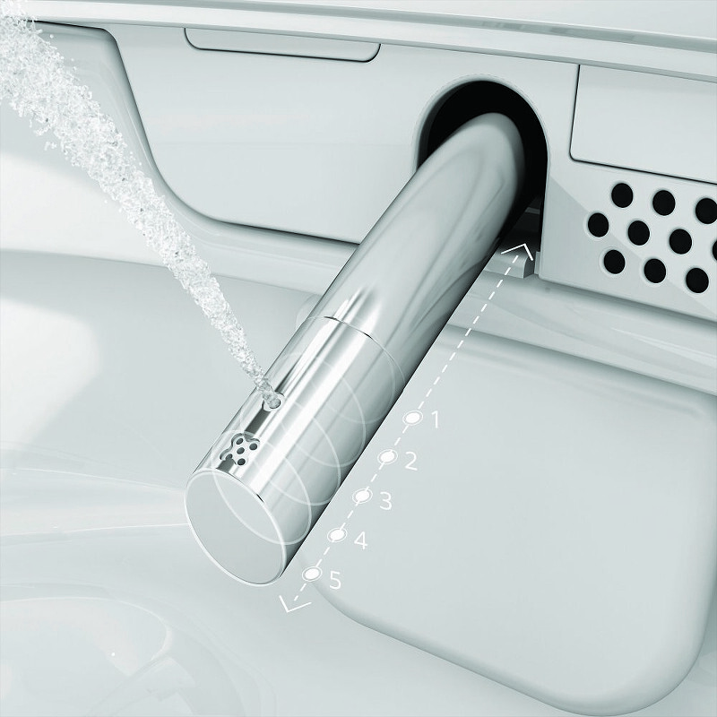 - электронная крышка-биде, регулировка напора воды в биде, настройка положения штуцера, настройка режимов биде, регулировка температуры воды биде, регулировка температуры фена, самоочищающийся стержень для гигиенического омывания