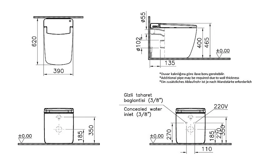 стиля жизни, включая различные опции обмывания, регулировку температуры воды и сиденья, опции сушки и механизм автоматического открытия/закрытия. V-Care введет новый стандарт в вашей ванной комнате, с его уникальным дизайном, непревзойденным комфортом и повышенным уровнем гигиены.