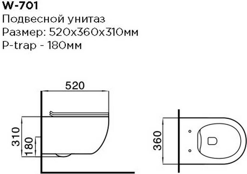 Подвесной унитаз Black & White Universe W-701 горизонтальный выпуск