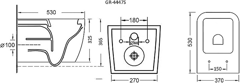 Подвесной унитаз Grossman GR-4447S с горизонтальным выпуском, с микролифтом УТ-00152284