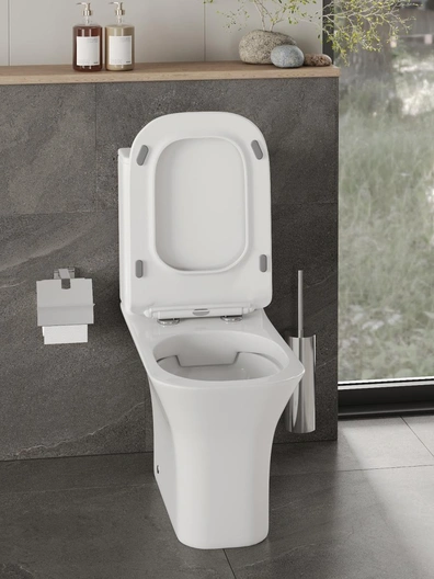 Чаша изготовлена из фарфора, который характеризуется твердой и гладкой поверхностью, что предотвращает впитывание поверхностью запахов и образование налета, а также повышенной прочностью изделия. Поверхность обработана антибактериальным покрытием. Быстросъемное сиденье из теплого дюропласта оснащено механизмом микролифта, закрывается плавно и бесшумно.