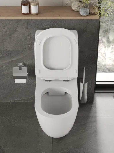 Унитаз оборудован сиденьем из дюропласта с микролифтом, обеспечивающим комфортное использование и отсутствие постороннего шума при опускании, системой “антивсплеск”.