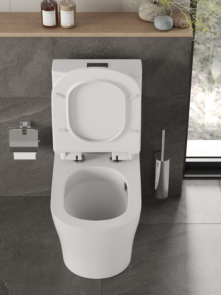 В комплекте быстросъемная крышка-сиденье с функцией плавного закрывания Soft-close, сиденье изготовлено из прочного материала - дюропласта, петли крышки-сиденья из нержавеющей стали.