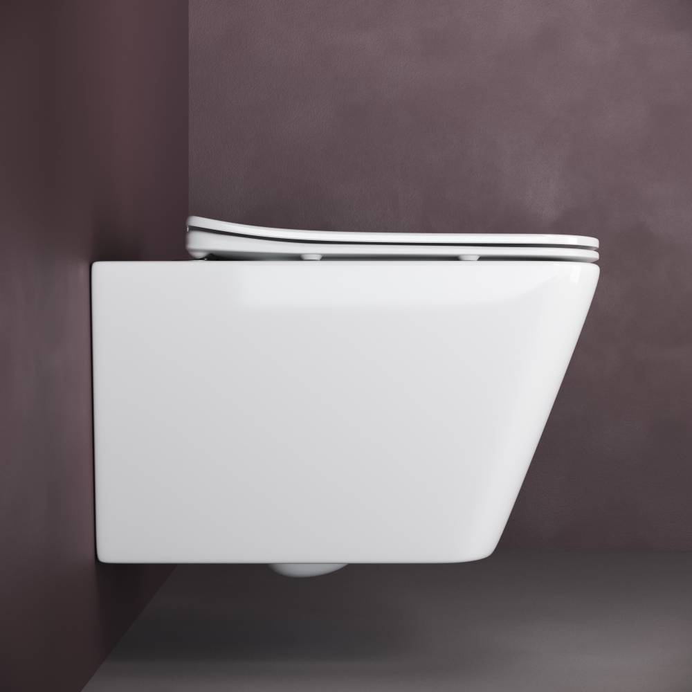 Подвесной унитаз Metric Rimless, глубокий смыв, с крепежом для полностью скрытого монтажа, ультра тонким с сидением и крышкой с функцией плавного закрытия, дюропласт