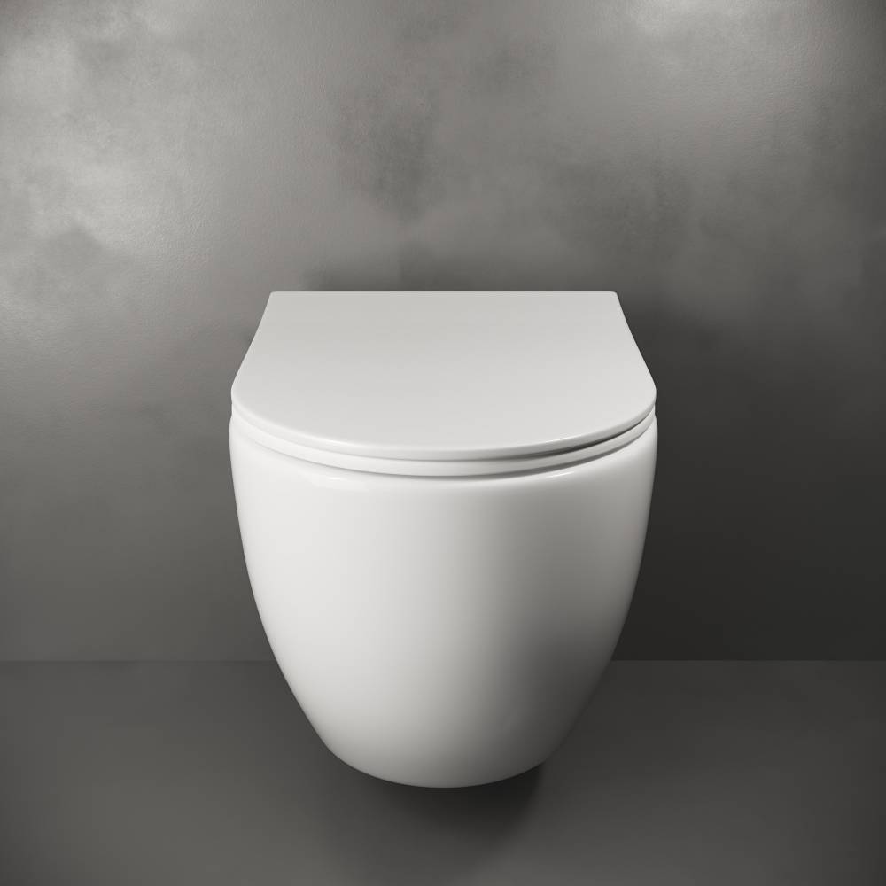 Подвесной унитаз Mia Rimless, глубокий смыв, с крепежом для полностью скрытого монтажа, ультра тонким с сидением и крышкой с функцией плавного закрытия