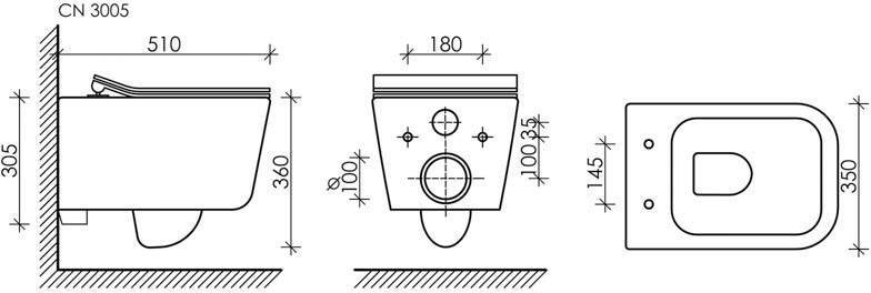 | Подвесной унитаз New Day Rimless, глубокий смыв, с крепежом для полностью скрытого монтажа, ультра тонким с сидением и крышкой с функцией плавного закрытия, дюропласт |