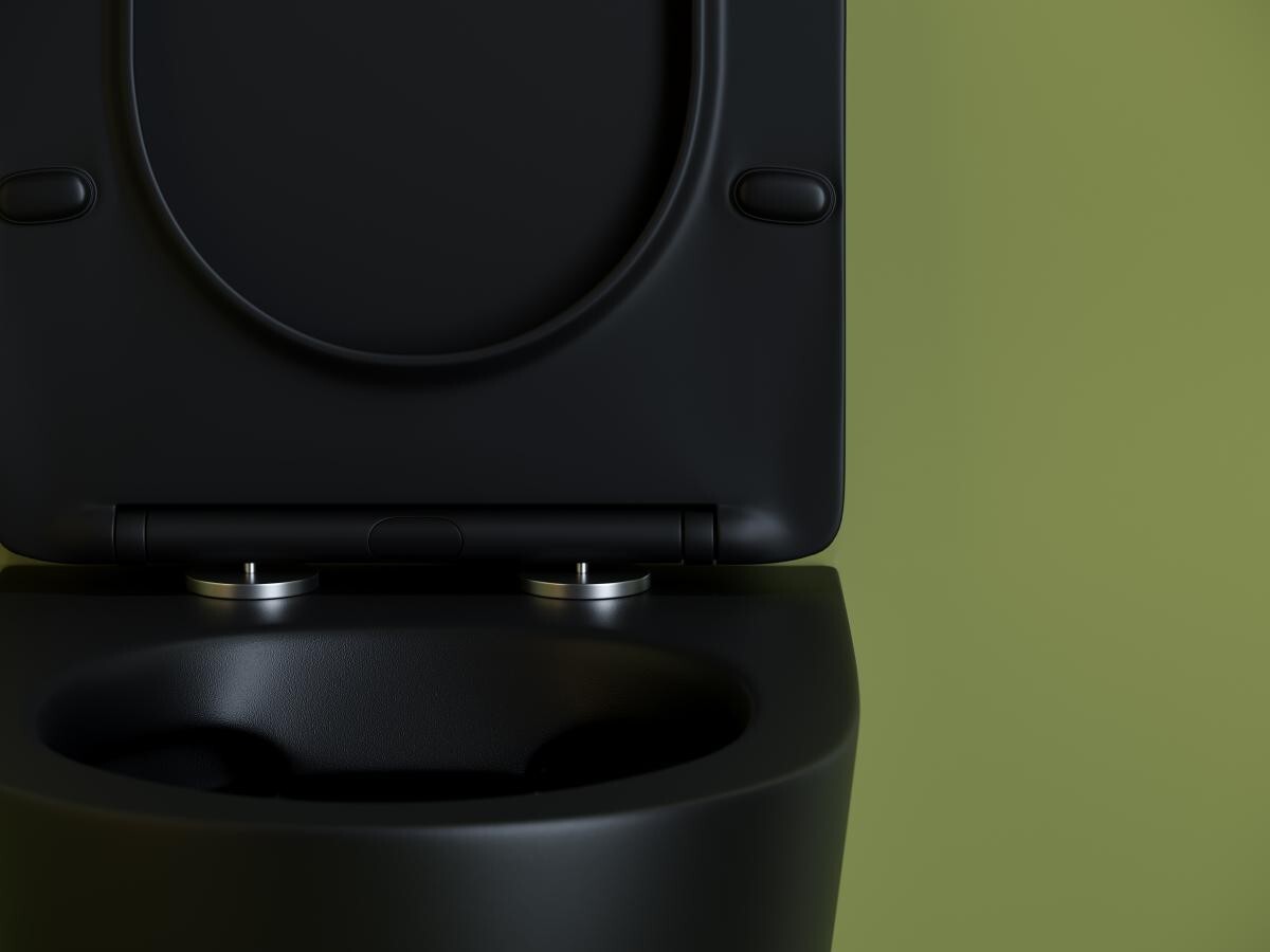 Подвесной унитаз Uno Rimless, глубокий смыв, с крепежом для полностью скрытого монтажа, ультратонким сидением и крышкой с функцией плавного закрытия, цвет чёрный матовый