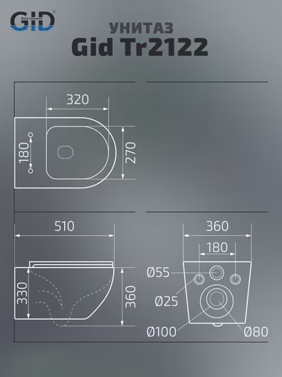 Подвесной унитаз Gid Tr2122 безободковый белый УТ-00189497