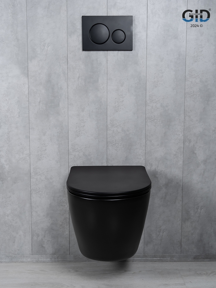 Подвесной унитаз Gid Tr2122TF-Bm безободковый черный матовый