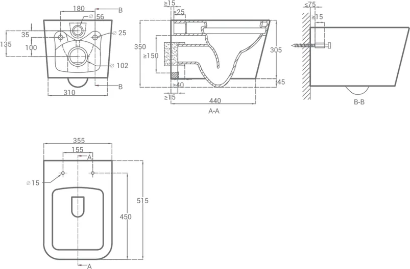 - Подвесной унитаз - 1 шт. Инструкция - 1 шт.