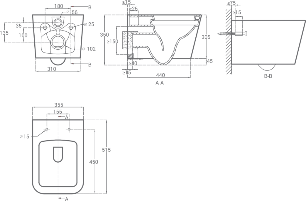 - Подвесной унитаз - 1 шт. Инструкция - 1 шт.
