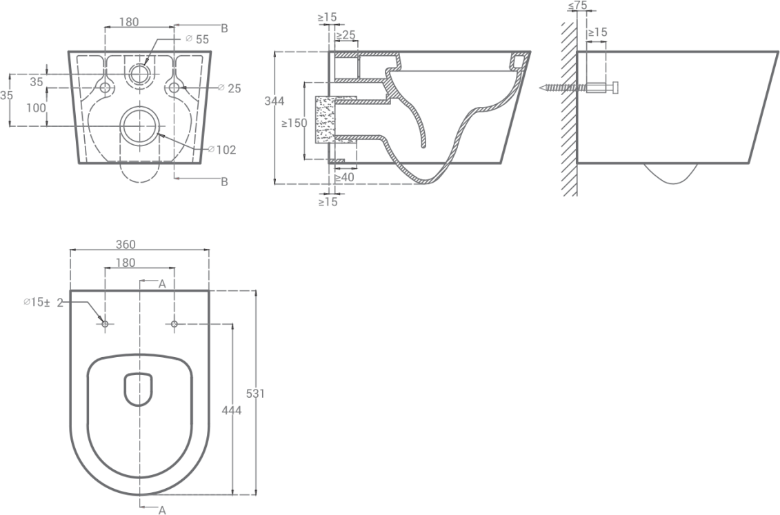 - Подвесной унитаз - 1 шт. Инструкция - 1 шт.