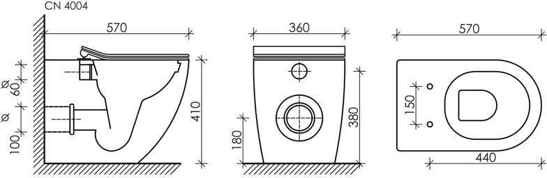 Унитаз приставной Ceramicanova Metropol CN4004 безободковый горизонтальный