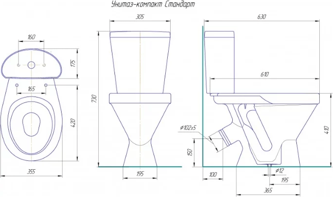 - Подвод воды: снизу бачка