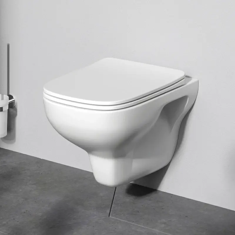 - влагостойкий и гигиеничный стекловидный фарфор, включая скрытые крепления и фановый выход придают легкость при уборке унитаза; быстросъемное дюропластовое сиденье защищает поверхность от царапин.