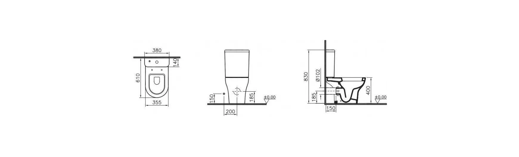 Унитаз-компакт Vitra Zentrum Open-back, 9824B003-7207 горизонтальный выпуск