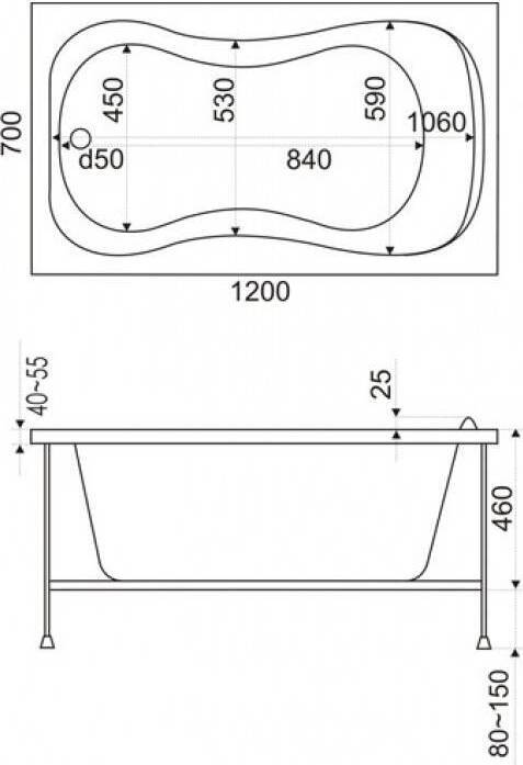 Акриловая ванна Bas Кэмерон 1200х700 ВС00005 стандарт + ножки СТ026536