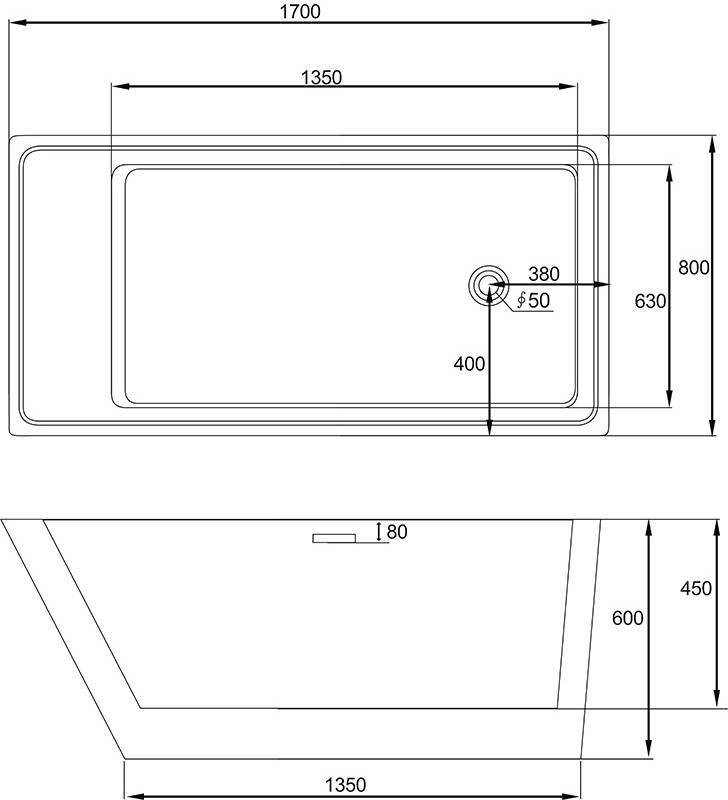 Акриловая ванна Abber AB9208 170x80x60 слив-перелив, стальной каркас