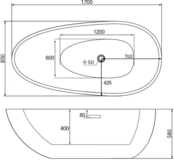 Акриловая ванна Abber AB9211 170x85x58 слив-перелив, стальной каркас