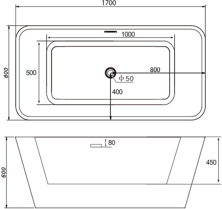 Акриловая ванна Abber ABBER AB9212 170x80x60 слив-перелив, стальной каркас